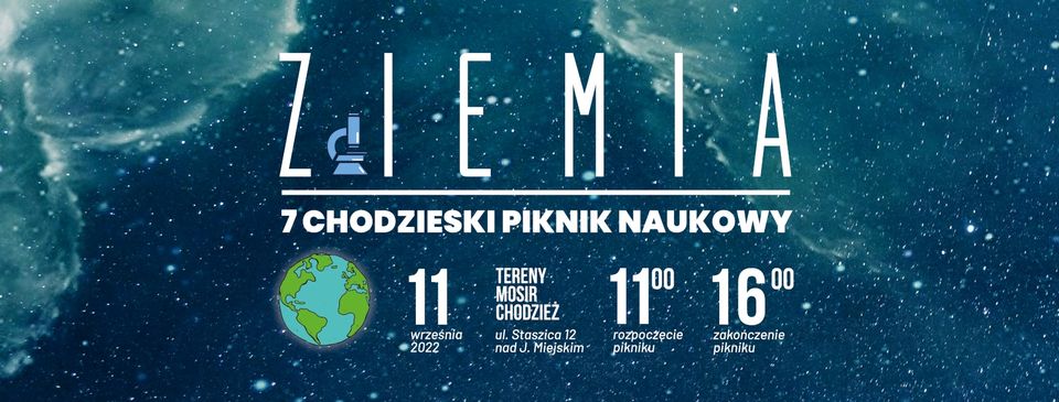 W niedzielę, 11 września br. będziemy na 7.Chodzieski Piknik Naukowy w Chodzieży. W tym roku hasłem przewodnim jest Ziemia. Piknik Naukowy w Chodzieży to moc atrakcji, wiedzy, nagród i pozytywnej energii